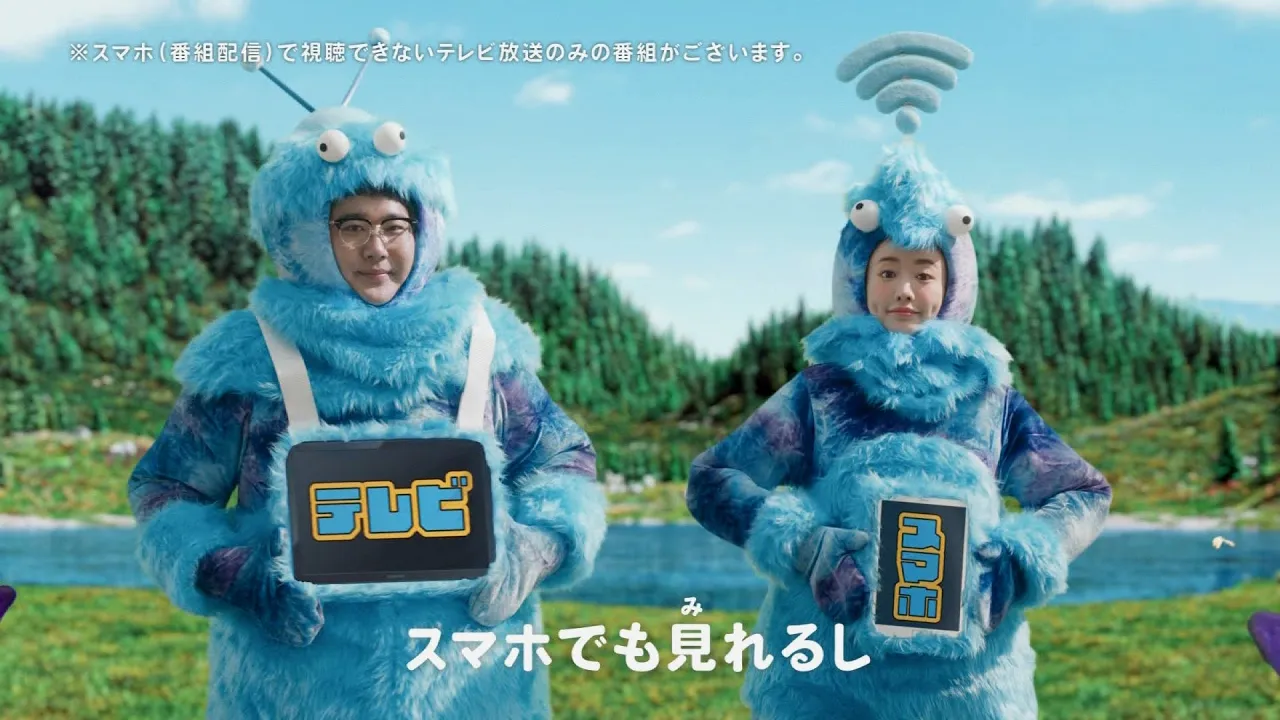This is a commercial showing Kotaro Yoshida and Anna Yamada as aliens, speaking on a news program for extraterrestrials.